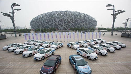 Toyota holds the idea that spirit on athletics, such as pushing the envelope, enthuasiam on pursuing and unlimited passion are exactly same with Toyota`s. Since 2003, Toyota established their partnership with IAAF, and launched the campaign of “Beyond Limits”. This time in Beijing, to meet the theme of “Green Earth, Green Event”, 140 of 200 Toyota cars are hybrid, dual-engine cars.