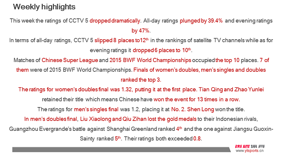 Weekly report: 7 matches of 2015 BWF World Championships cracked the top 10