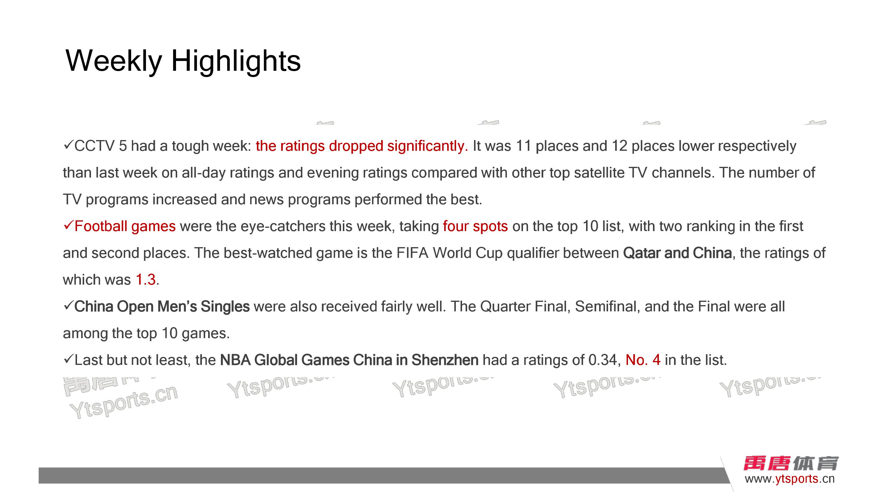 Weekly Report: 2018 World Cup Qualifier tops in TV ratings