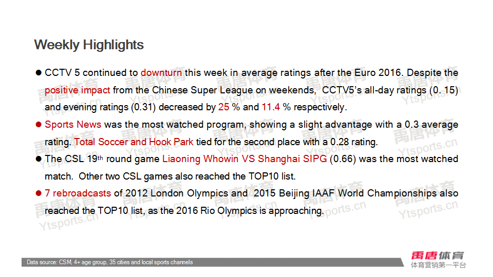 Weekly Report: Liaoning Whowin VS Shanghai SIPG (0.66) was the most watched match