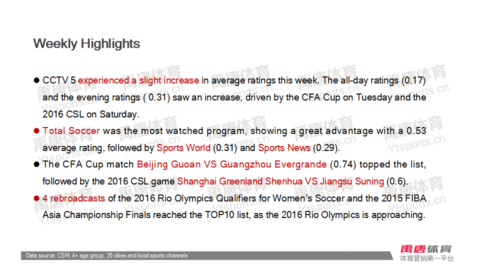 Weekly Report: CCTV5 made a new high in weekly ratings since the start of the 2016
