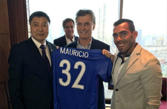 Mauricio Macri, President of Argentina who came to China for the Belt & Road Forum for International Cooperation, met with Shanghai Shenhua FC Chairman Wu Xiaohui and Argentine football star, Carlos Tévez, on May 18 in Shanghai.
