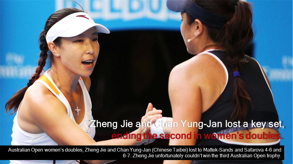 Although Peng Shuai made 4th round in Women's Singles while Zheng Jie's Double played in the Final of Women's Double,the first two rank are the Men's Singles.