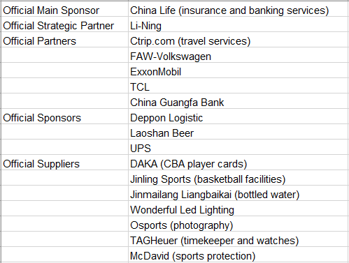 Alongside China Life, other companies and brands have joined forces with the league. The full list of league sponsors is as follow: