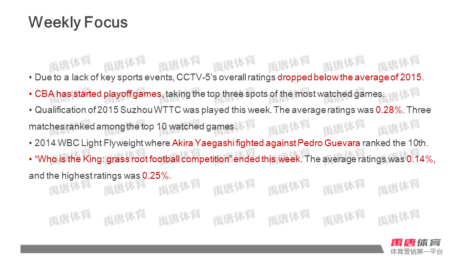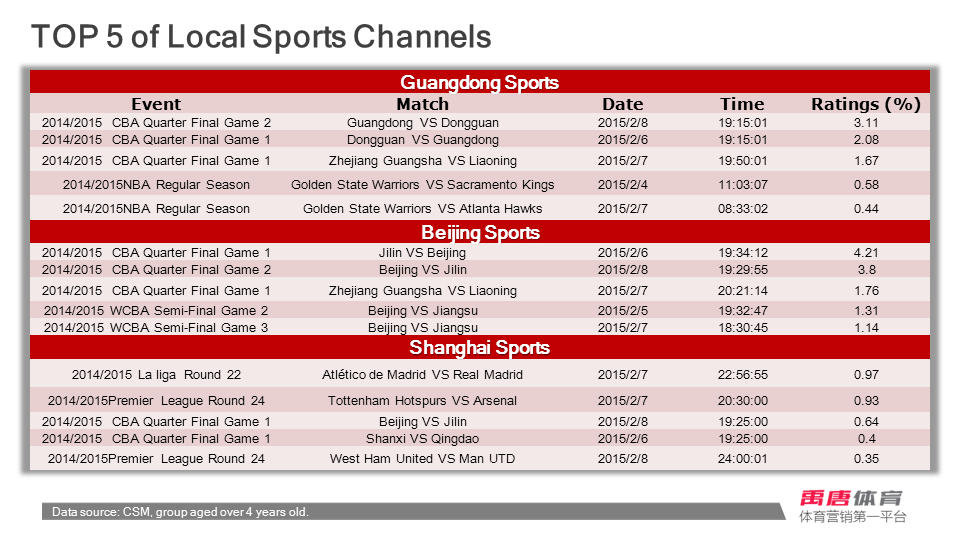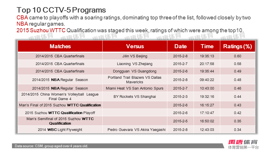 Weekly report of sports broadcasting (3/2/2015-8/2/2015)