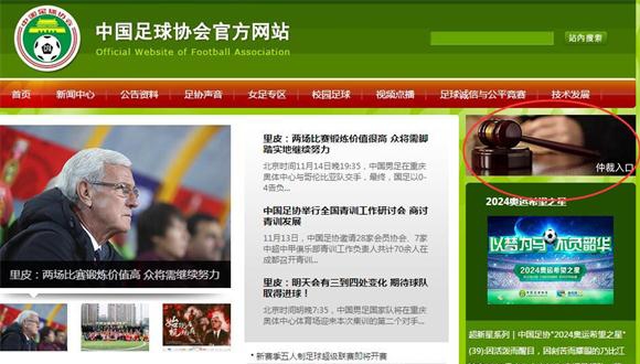 November 17, Beijing: The Chinese Football Association (CFA) has launched an arbitration platform on its official website, which consists of two parts, Case Acceptance and Announcement of Court Sessions.