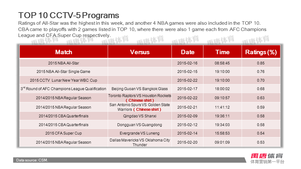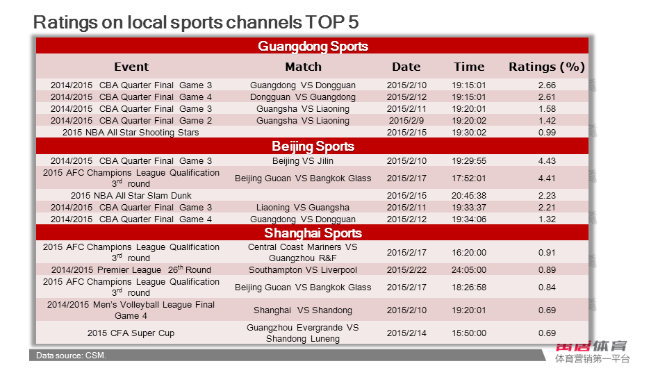 Weekly report of sports broadcasting (2015.2.9-2015.2.22)