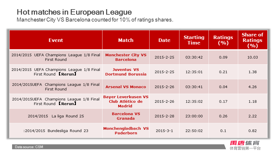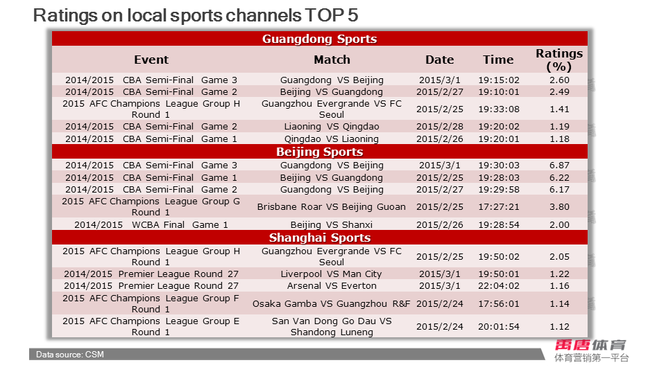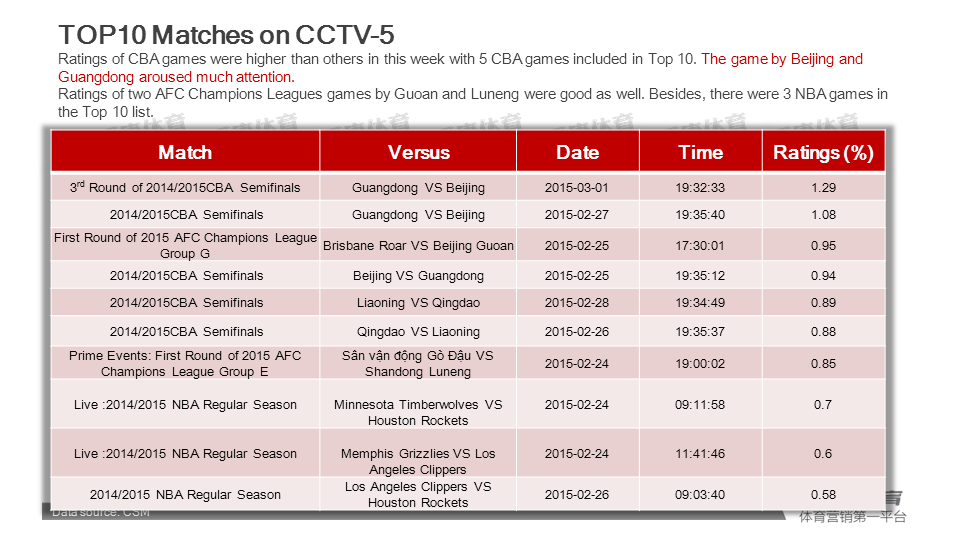 Weekly report of sports broadcasting (2015.2.23-2015.3.2)