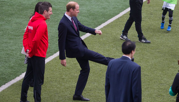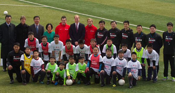 The Duke of Cambridge met youngsters at a school in Shanghai where premier league football coaches are working to promote the game among the students.The Prince was shown around by Paul Hughes, a former coach at Reading, Millwall and Southampton football clubs, who is helping to coach the students under a British Council-run scheme called Premier Skills.