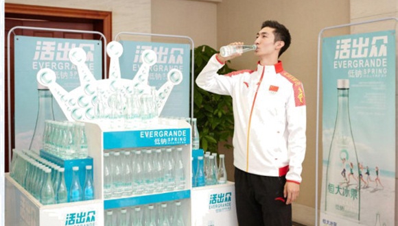 Under their sponsorship deal, the two sides will work together to promote the development of Evergrande Spring and other products as well as publicize their value of healthy drinking water and diet.