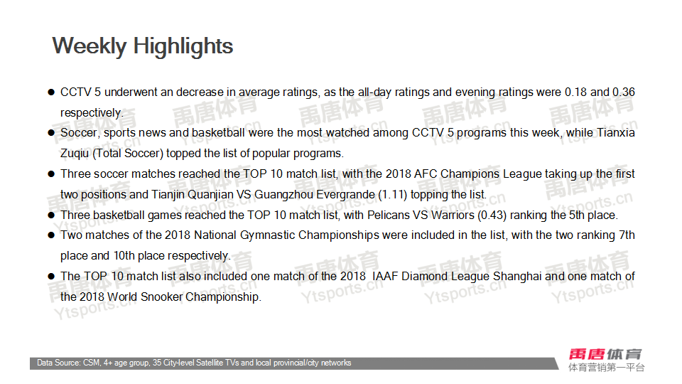 Weekly Report: The AFC Champions League game Tianjin Quanjian VS Guangzhou Evergrande topped the match list