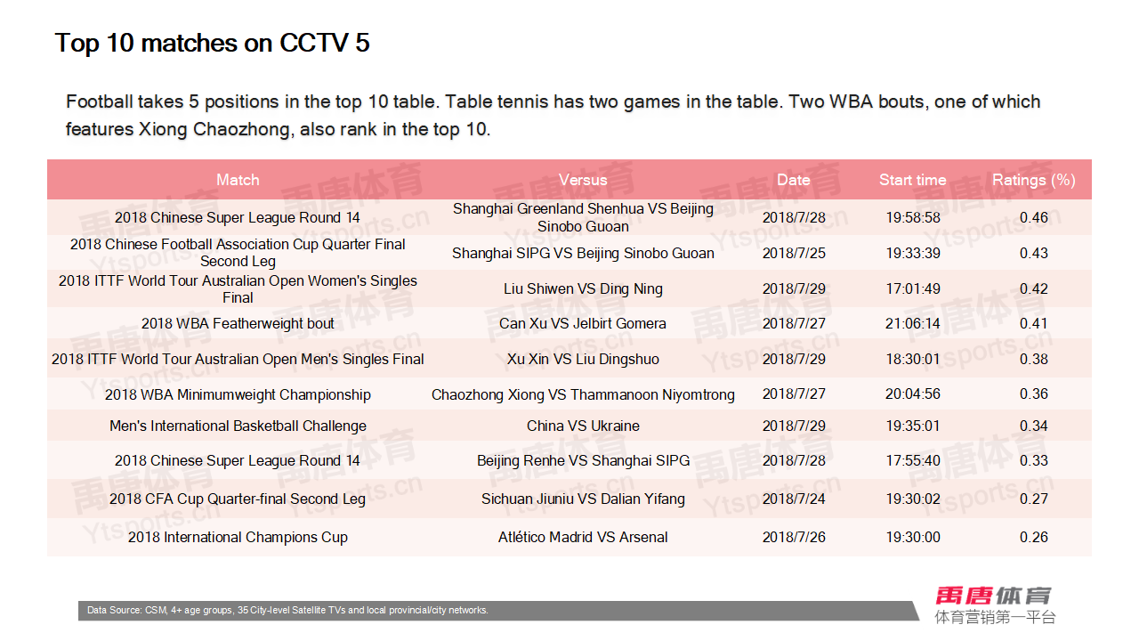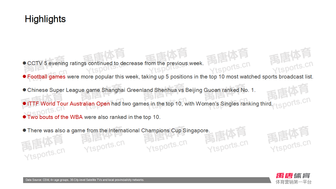 Weekly report: CSL, CFA Cup and ITTF Australian Open take the top 3 positions