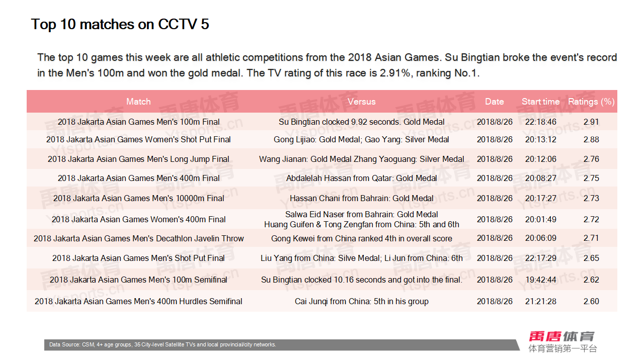 Weekly report: Jakarta Asian Games dominates the top 10 list