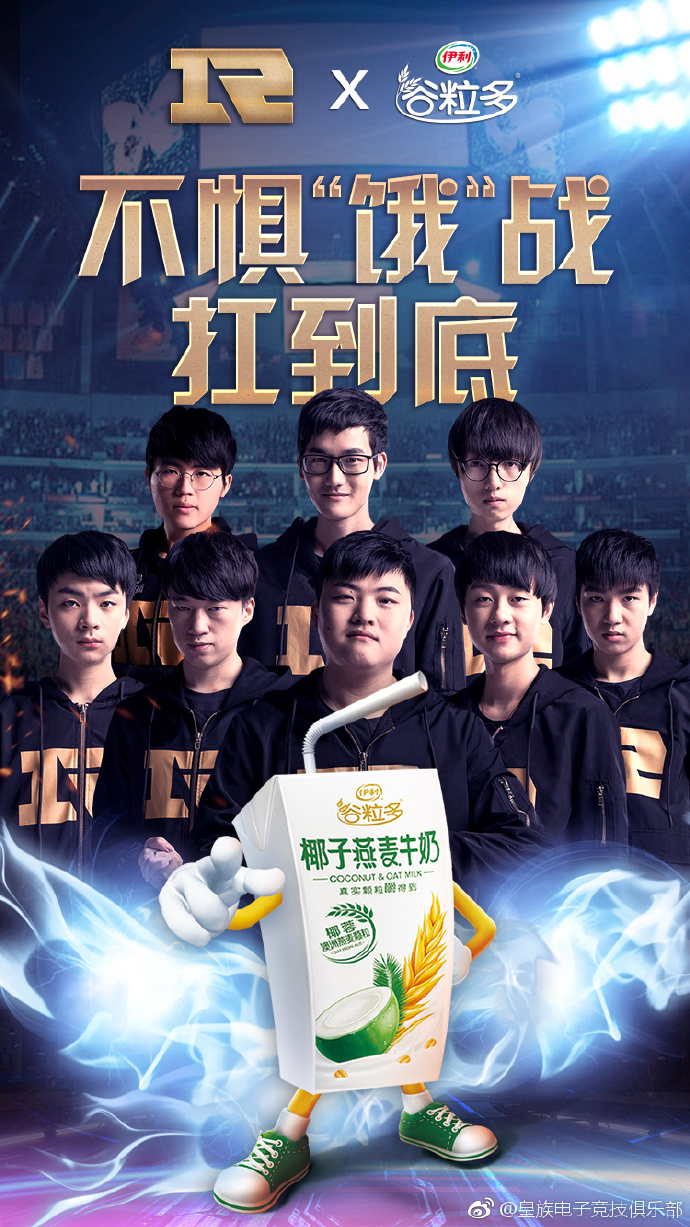 Chinese eSports club RNG has partnered with Guliduo, the grain milk product of Yili Group. The deal was announced on RNG’s Weibo account on September 7, three days after they also announced a deal with KFC. Guliduo becomes an Official Partner of the club.