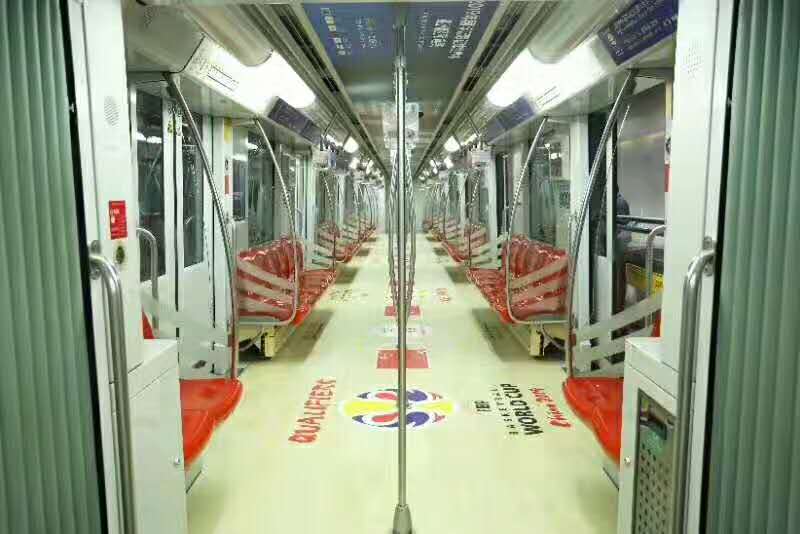 The Shanghai subway Line 3 carriages, which takes you to Shanghai Baoshan Sports Center, has since November 13, been fully decorated with the basketball theme to promote the upcoming FIBA Basketball World Cup 2019 Qualifiers.It is like stepping onto a basketball court when people enter the subway.