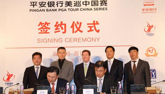 Pingan Bank officially signed 2015 PGA Tour China Series and became the title sponsor. On March 31st, the signing ceremony was held in Haikou Mission Hills Golf Club. Then the title of the PGA China Tour changed into “Pingan Bank PGA China Tour Series”. The leaders of Pingan Bank, China Sports Bureau and PGA China attended the ceremony.
