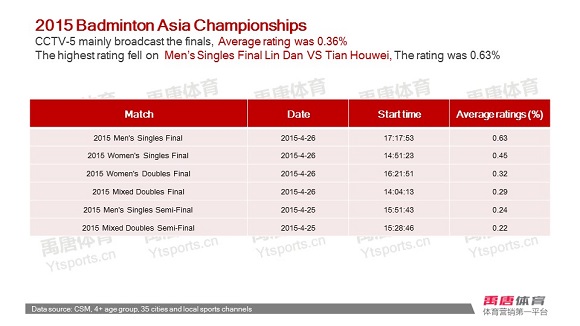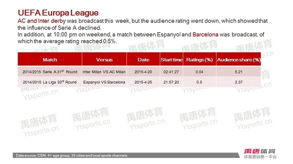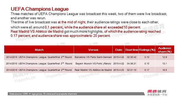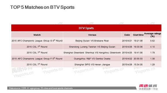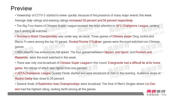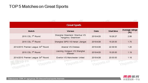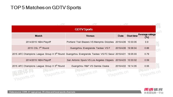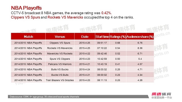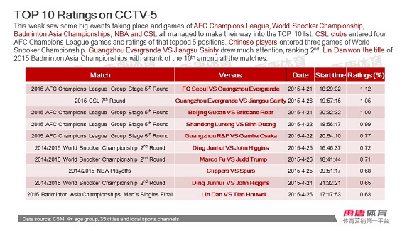 Weekly report of sports broadcasting (2015.4.20-2015.4.26)