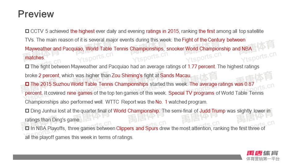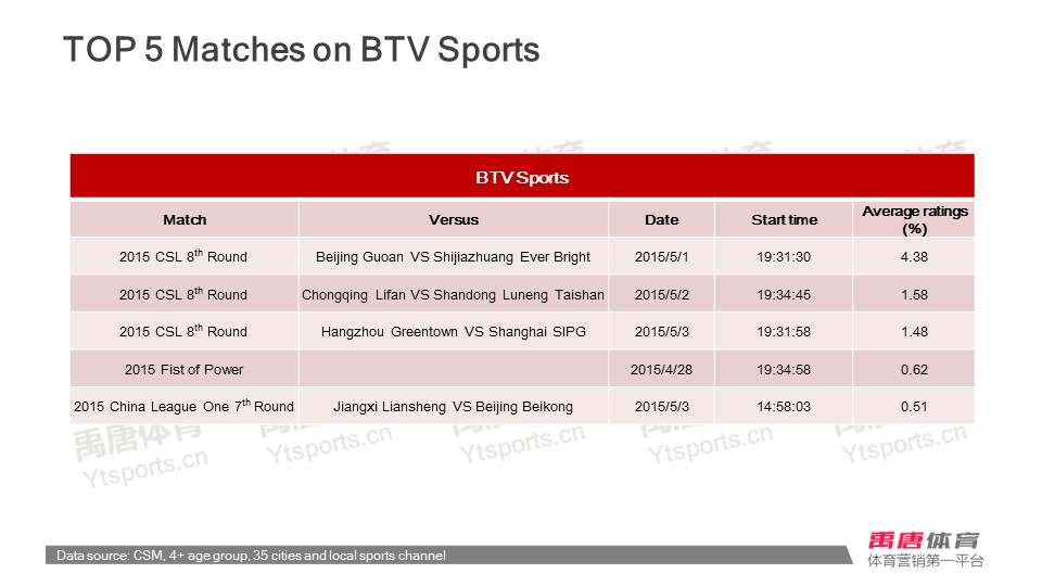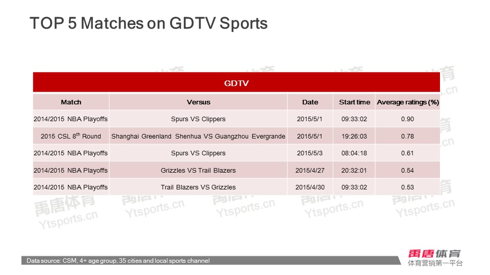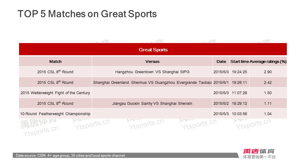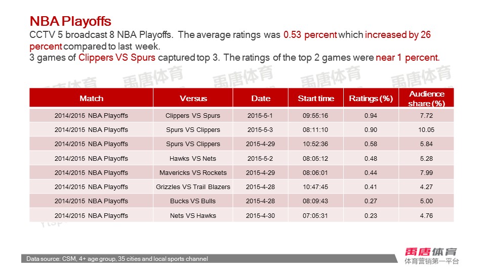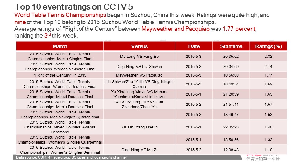 Weekly report of sports broadcasting (2015.4.27-2015.5.03)