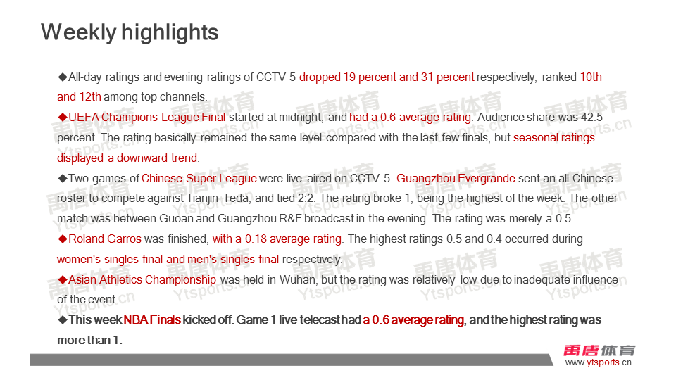 Weekly report of sports broadcasting (2015.6.1-2015.6.7)